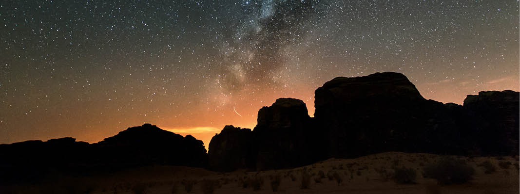 Billede: Nattehimlen over Wadi Rum ørkenen.