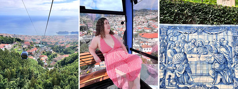 I dag er dagen fri til oplevelser på egen hånd, og efter nogle tidlige morgener må vi tilstå, at vi trænger til at sove længe. Vi nyder en langsom morgen og formiddag, og da hotellets gratis shuttlebus har afgang mod Funchal i løbet af eftermiddagen, tager vi med. Vi vil til Monte – den lille by, som ligger nord for – og lige ovenfor – Funchal. Monte når man nemmest med svævebanen. I havnen køber vi billetter og tager plads i en af de flotte, moderne kabiner. At se Funchal fra oven er magisk, og den ca. ti minutter lange tur er fantastisk.