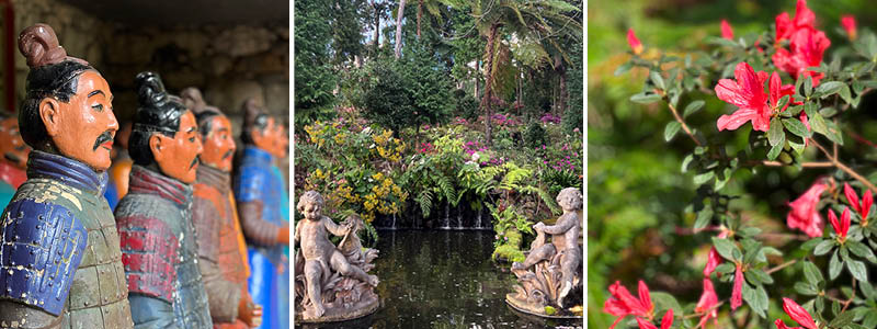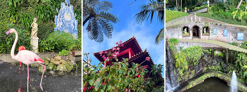 Da vi er klatret ud af svævebanen, går vi mod byens hovedattraktion – Monte Palace Garden. Mine forventninger er høje og bliver indfriet til fulde: Paladsets have er enestående. Den er stor – meget større end jeg troede – varieret og fyldt med skønhed og tusindvis af planter. Men også kunst, udstillinger og skulpturer. Her er både et asiatisk tempel og et vandfald – og lysende lyserøde flamingoer, som spankulerer rundt i vandkanten på jagt efter mad.