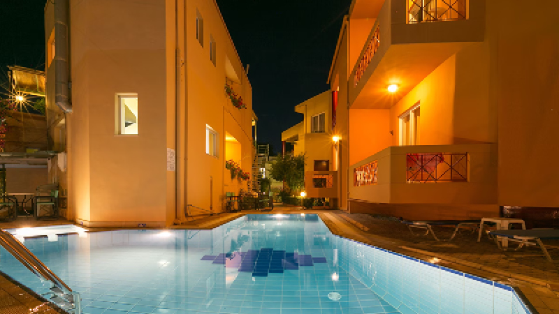 Hyggeligt hotel beliggende i rolige og naturskønne omgivelser kun 200 meter fra nærmeste strand. Området byder på fire forskellige strande, gode indkøbsmuligheder (550 m) og med rig mulighed for bustransport til Chania by (4 km). Hotellet tilbyder også cykelleje.