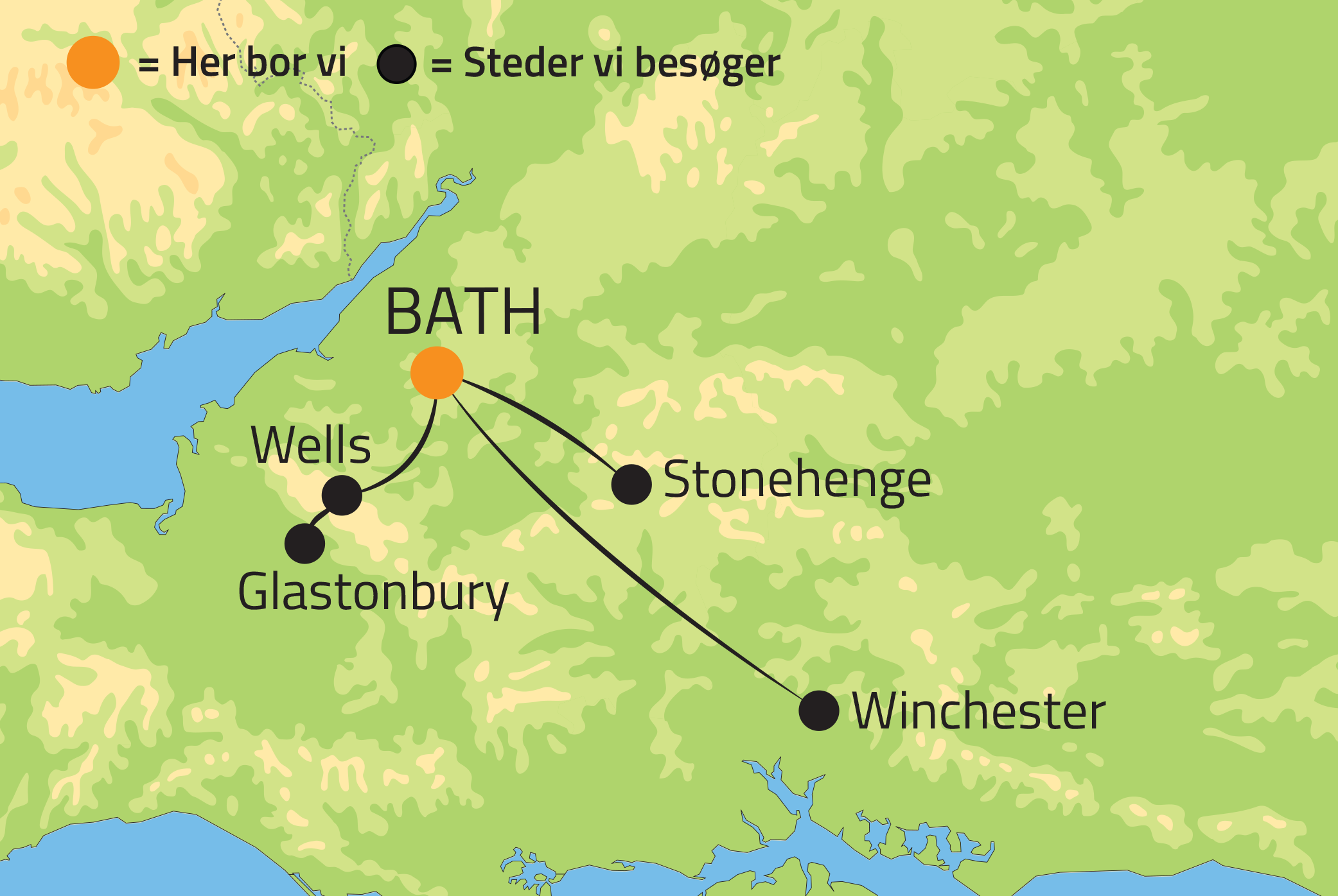 Sidst på eftermiddagen ankommer vi til Bath, hvor vi tjekker ind på hotellet og spiser middag sammen.