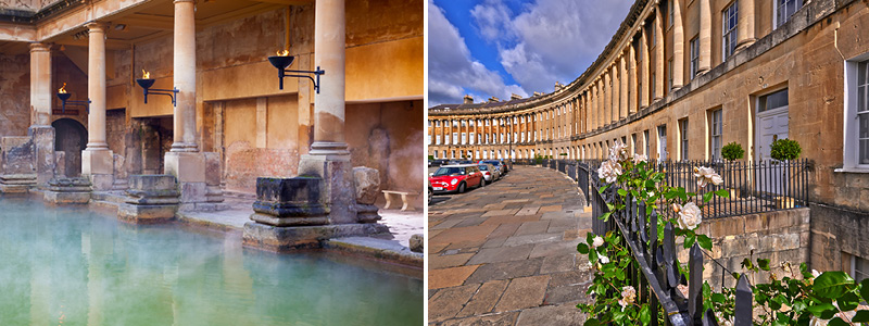 Bath, der er indbegrebet af arkitektonisk elegance, fungerede i det 18. århundrede som opholdssted for velhavere, konger og aristokrater qua de varme kilder og termiske romerske bade, som menes at have helbredende egenskaber og selskabslivet. Byen er også kendt som Jane Austens hjemby, og hendes forfatterskab er dybt forankret i byen.