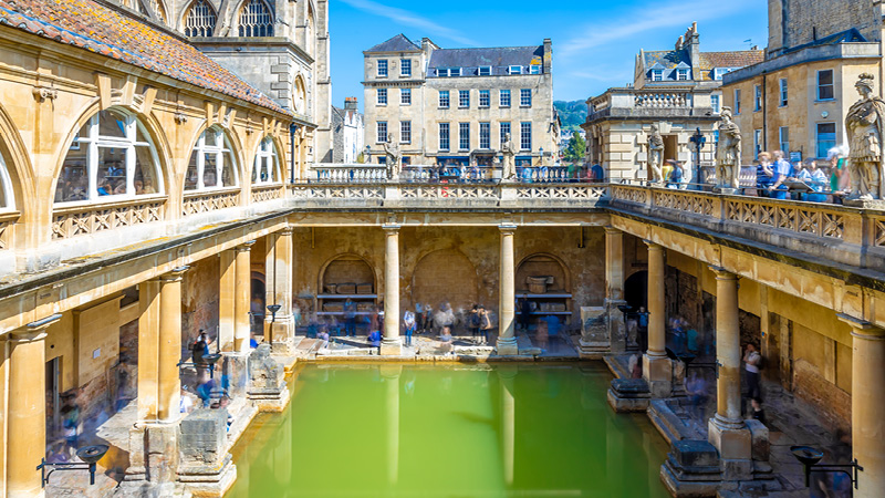 Mange englændere betegner Bath som en af landets smukkeste byer, og det står hurtigt klart hvorfor. Bybilledet er præget af klassicistisk, georgiansk og sengotisk arkitektur, og historiens vingesus mærkes overalt. Baths status som bevaringsværdig på UNESCOs Verdensarvsliste er fuldt berettiget, og vi besøger bl.a. de berømte romerske bade på Roman Bath Museum (entré inkluderet).
