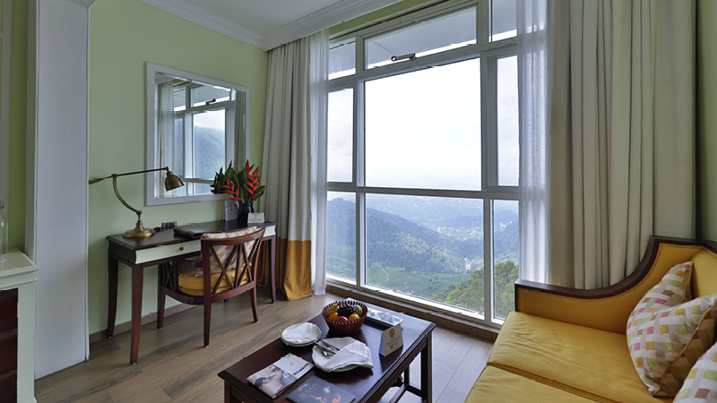 Vi bor i elegante værelser i kategorien Tropic Green Room med delvis udsigt til de omgivende bjerge. Værelserne har aircondition, satellit-tv, køleskab, kaffe- og tefaciliteter samt moderne badeværelser med badekar.