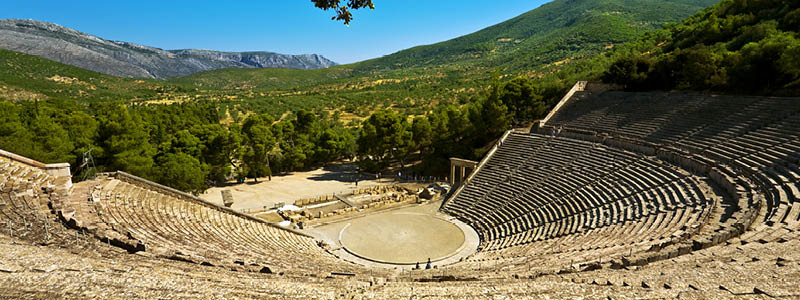 Ikke langt fra Nafplio besøger vi fra morgenstunden det verdensberømte antikke teater Epidavros. Det er en af de smukkeste arkæologiske seværdigheder i Grækenland og nok det bedst bevarede teater af alle. Det imponerer med sin perfekte akustik og er stadig fungerende som scene for diverse koncerter og teateropsætninger.