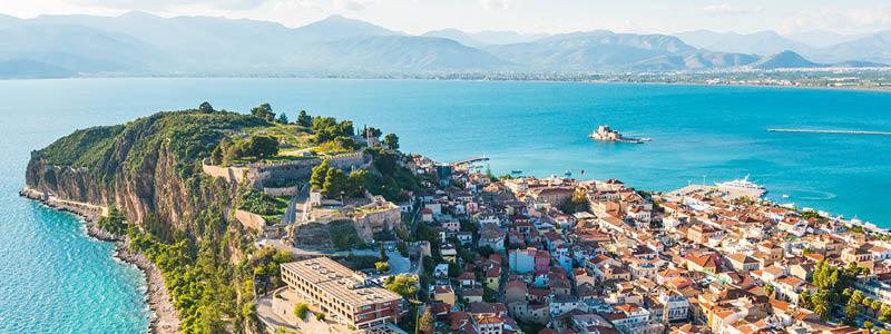 Nafplio - med tilnavnet Grækenlands smukkeste havneby - danner igen rammen for resten af dagen og aftenen. Du kan vælge at bruge tiden som du lyster, dog står rejselederen klar til at tage de som vil, med gennem byen og op på byens vartegn. Palamidiborgen, troner i sin venetianske pragt, majestætisk over byen. Udsigten fra fæstningen over hele Nafplio og havet omkring, er i sandhed spektakulær. Der skulle være 999 trin op til borgruinen, den bedst bevarede af sin slags, men vores bus kan køre os derop. Man kan da i eget tempo opleve ruinkomplekset og nyde udsigten. Der er også mulighed for at besøge byens lokale museum, shoppe, tage en dukkert i det tyrkisblå eller blot sidde på en café og indsnuse byens liv og charmerende atmosfære.
