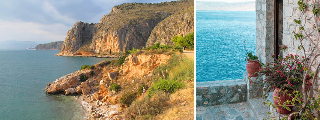 Turen denne morgen går med bus mod vest, langs Korintgolfen og Achaia-regionens grønne bjergmassiver. Fra havne -og stationsbyen Diakoftó begynder vores vandring gennem den naturskønne Vouraikos kløft. Ruten går langs med den lille tandhjulstogbane som er den mest spektakulære togrute på hele Balkanhalvøen.