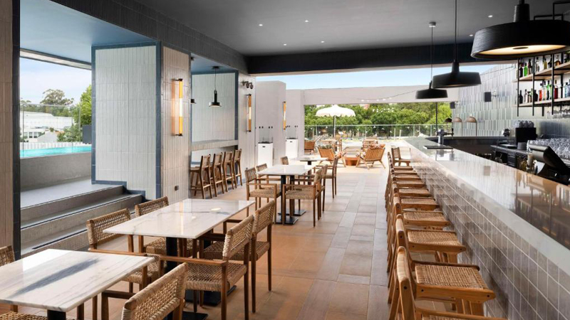 På hotellet er der bar, restaurant, terrasse samt en udendørs swimmingpool, der har sæsonåbent.