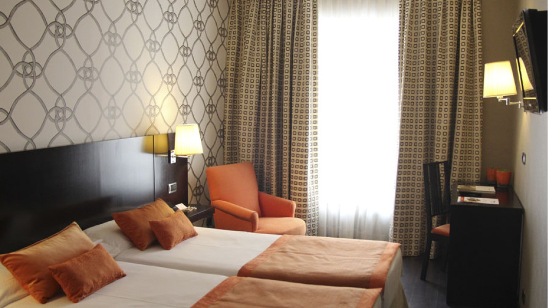 Hotellet ligger helt centralt med både Calatravas Bro, Guggenheim Museum og den gamle bydel indenfor gåafstand. Ud over områdets mange restauranter og cafeer tilbyder hotellet en udemærket restaurant og cocktailbar. Hotellets fitnessrum og sauna kan frit benyttes og du har ligeledes gratis WiFi på hotellets område. Værelserne er moderne indrettet med Smart Tv og aircondition samt badeværelse med hårtørre og toiletartikler. Der kan forespørges om kaffemaskine i receptionen.