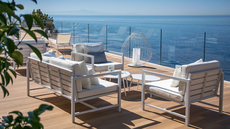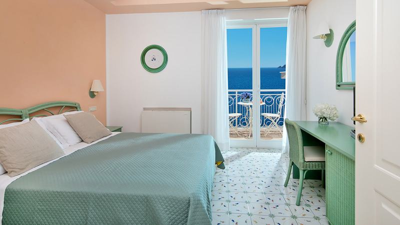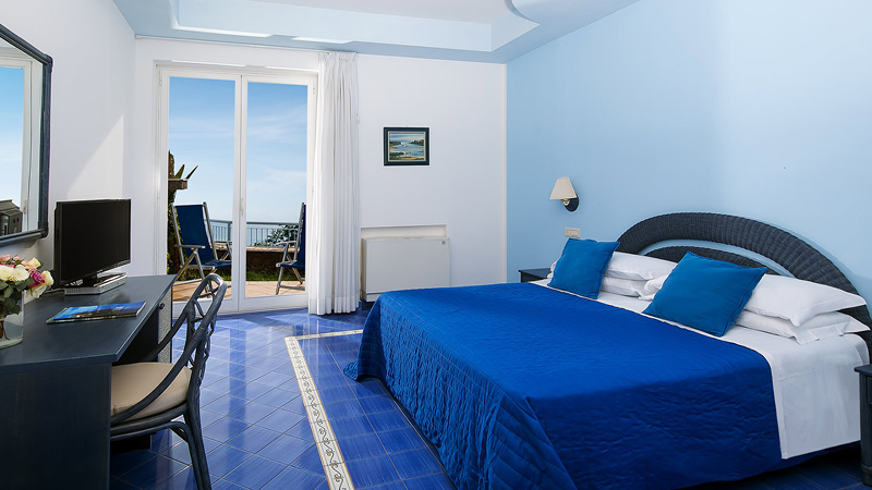 Vi har et enkeltværelse med direkte havudsigt, alle dobbeltværelser (Panoramaværelser) har balkon eller terrasse. Der er bad og toilet, hårtørrer, aircondition, Wifi og TV, og de fleste har værdiboks.