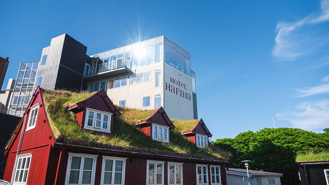 Hotel Hafnia, et af Færøernes bedste hoteller! Hotellet er beliggende midt i centrum af Tórshavn. Du har gågaden, bymidten, Bryggen, Domkirken, butikkerne mm inden for 5-10 minutters gåafstand. Indkøbscenteret SMS er ca. et kvarters gang fra hotellet eller du kan benytte de gratis bybusser.