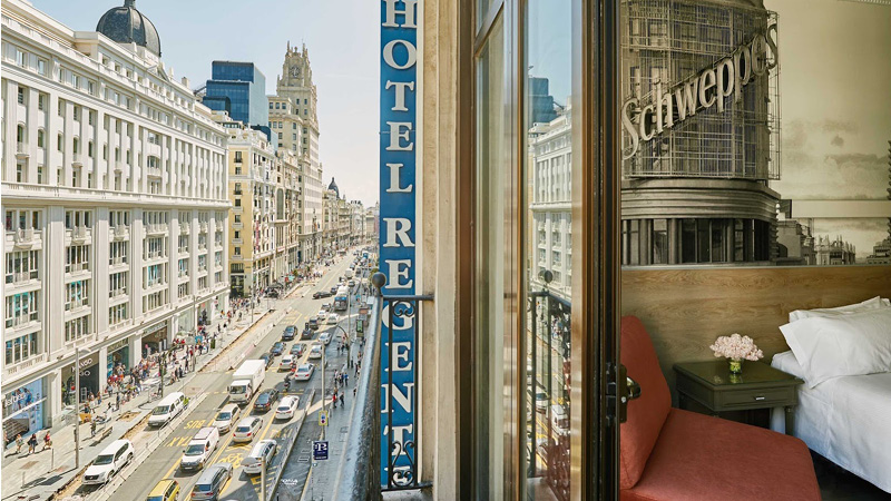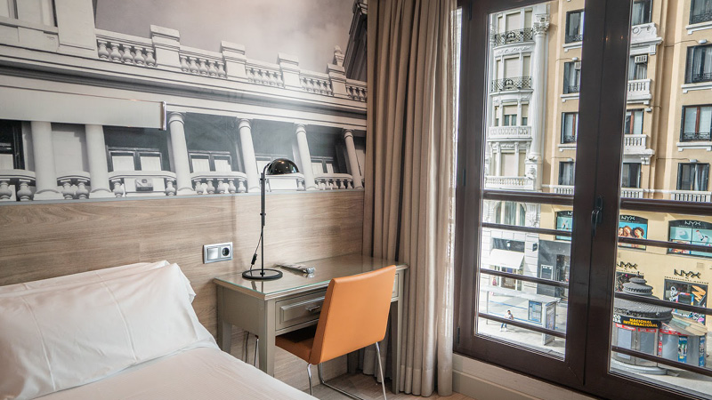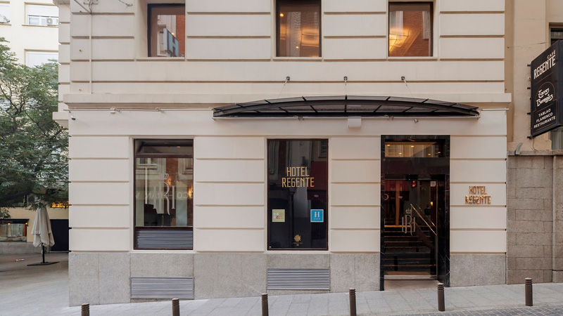 Hotel Regente ligger helt centralt på La Gran Vía i Madrid, tæt på Puerta del Sol, hvor du finder emblemiske bymonument. Du er i gåafstand til både kongeslottet og Almudenakatadralen og omgivet af det pulserende liv med butikker, shoppingcentre, restauranter og teatre. Hotellet har også en cafe/snackbar som har åbent til sent. Der er gratis wifi på hele hotellet.