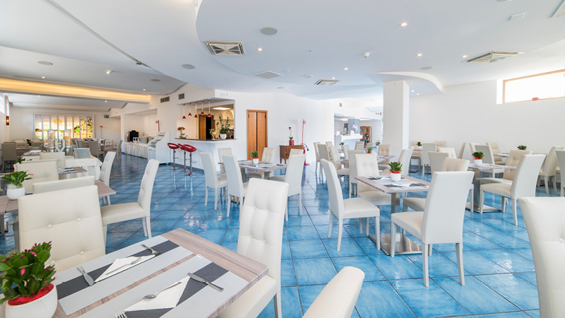 Den inkluderede morgenmad indtages i hotellets morgenmadssalon, der er beliggende i åben forbindelse med receptionsområdet (en etage under gadeniveau). I løbet af dagen er det muligt at købe kaffe eller en kølig aperitif fra hotellets lille bar-hjørne, som du kan tage med op på værelset og nyde på din balkon, mens du skuer ud over kysten. Drikkevarer kan købes ved henvendelse i receptionen.