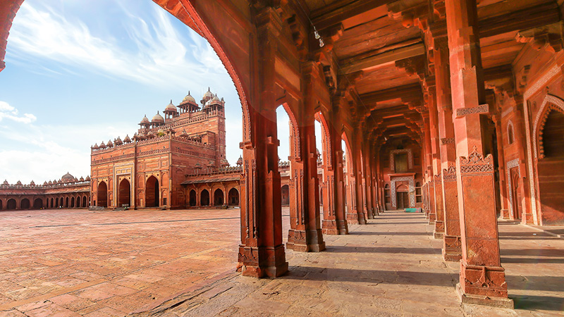 Det første er Fatehpur Sikri, en forladt UNESCO-bevaret spøgelsesby opført af den store Mughal-kejser Akbar i slutningen af det 16. århundrede. Oprindeligt var den tænkt som kejserens hovedstad og palads, men byen blev forladt pludseligt efter kun 14 år, da de lokale brønde tørrede ud. Byens paladser og moskeer af røde sandsten er næsten perfekt bevarede og giver et fascinerende indblik i Mughal-arkitektur og historie.