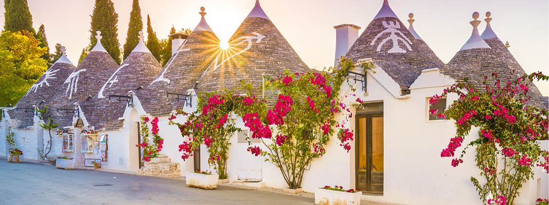 Herefter tager vi til et andet af Apuliens højdepunkter – og særkender – Alborobello med sine fine runde Trulli-huse, som er fundet værdige til UNESCOs verdensarvs liste. Vi får hele historien af vores lokal guide, og en helt særlig oplevelse når vi vandre gennem denne helt unikke arkitektoniske perle.