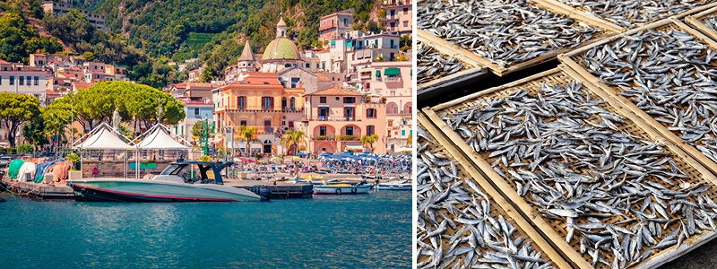 Dag 5: Bådtur til Cetara. Besøg hos ansjosproducent. Pizzafrokost (M,F)