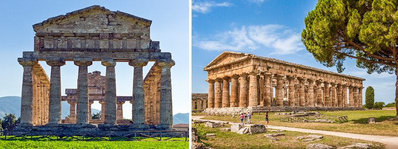 Billeder: Paestums græske templer i dorisk stil.