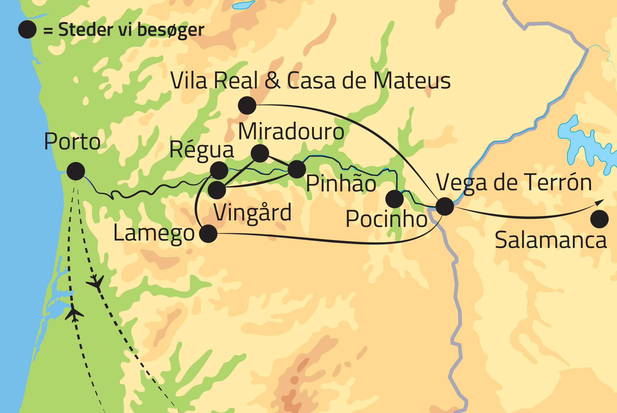 Rejsen tager os fra Portos charmerende gader til spanske Salamanca og ikoniske Lamego. Vi skal ikke snydes for portvinssmagninger undervejs, og så er der god tid til at nyde sejladsen langs floden.