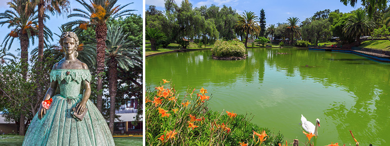 Billede: Statue af den østrigske kejserinde "Sisi" ved Hotel Pestana Casino og Santa Catarina-parken.