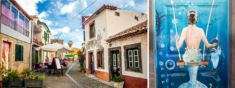 I den gamle bydel ser vi, hvordan lokale kunstnere har udsmykket gadedøre på kreativ vis med street art i gaden Rua Santa Catarina. Her summer altid af liv og noget at kigge på, ligesom der er et stort udvalg af spisesteder og små butikker.