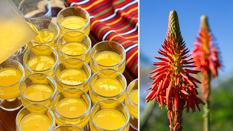 I markedshallen har vi inkluderet en smagsprøve på Madeiras populære drink poncha, som med et glimt i øjet blandt de lokale betragtes som ”medicin”. Vi ser, hvordan den blandes med Madeiras aguardente branca (sukkerrørssnaps), citron og honning.