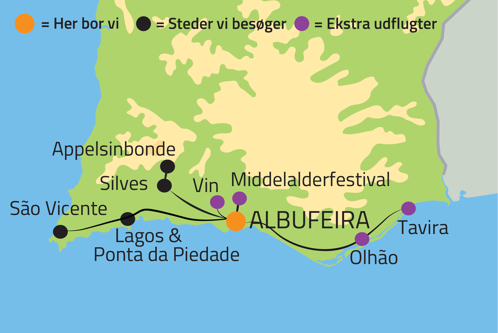 Portugal er kendt som søfartsnation, og den vestligste del af kysten var sidste bastion for kendte opdagelsesrejsende som blandt andre Henrik Søfareren, inden han og andre drog ud i verden. Vi tilbringer en hel dag i det vestlige Algarve. Vi skal rundt i byen Lagos hvor vi lærer om lidt Portugals fortid fra slavemarkedet til det moderne byliv og besøger en af de gyldne strande med et fantastisk udsigtspunkt ved Ponta da Piedade. Vi runder også Europas sydvestligste punkt, Cabo São Vicente, også kendt som ”verdens ende for søfarende”.