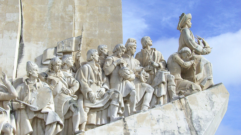 Lidt længere henne ad flodbredden rejser det 60 meter høje ”Monumentet for de opdagelsesrejsende” sig som et skib ved Tejo-flodens bred. Her skuer Portugals stolte sønner, deriblandt de store opdagelsesrejsende Henrik Søfareren og Vasco da Gama, ud i horisonten. På pladsen foran ser vi Kompasrosen med verdenskortet illustreret, hvor langt omkring de portugisiske opdagelsesrejsende kom ud i verden, nemlig Afrika, Indien, Asien og det amerikanske kontinent. Vi runder også Jeronimus-klosteret og Santa Maria de Belém-kirken og ser de smukke bygninger udefra.