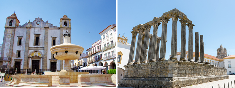 Vi begynder dagen i Evorá, hvis historie går tilbage til romertiden. Vi går en tur i byen, som er meget hyggelig og charmerende. På en af byens pladser står Diana-templet med de fine korintiske søjler, og vi kigger også ind i domkirken, hvis den er åben. I en af andre kirker, São Francisco, kan du opleve noget så bizart som et knoglekapel. Entré betales direkte, €4-6 pr. person.