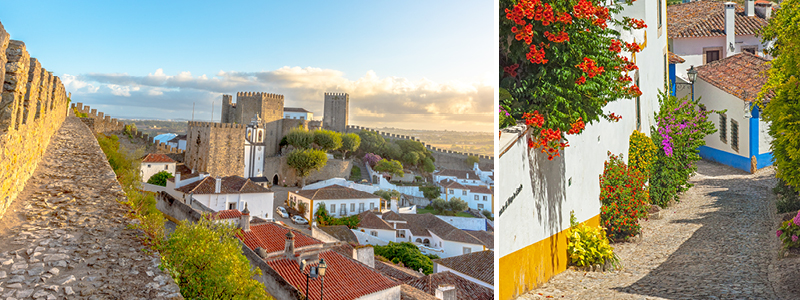 Vi holder pause i byen Óbidos, en malerisk landsby, som er omgivet af en middelalderlig bymur og kendt for sin charmerende gamle bydel ved byens historiske fæstning, som i dag er omdannet til hotel. Her er hyggelige gader med blomstrende bougainvillea, hvidkalkede huse og brostensbelagte gader.