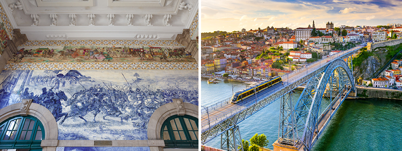 Vi krydser Douro-floden og begiver os mod det historiske centrum, hvor vi skal på bytur. På Portos historiske banegård, São Bento, får vi visuel historieundervisning, når vi beundrer de smukke kakler, der dækker væggene fra gulv til loft i hallen med illustrationer af vigtige begivenheder fra Portugals historie og dagligdagsliv. Porto er særdeles betagende. Især det pittoreske flodkvarter Cais de Ribeira med de gamle huse, snævre gader og udsigten til Portos flotteste bro er imponerende. Du kommer rundt i det historiske centrum, der huser prægtige bygningsværker som Clerigos-tårnet, fine palæer, byens domkirke og børsen.
