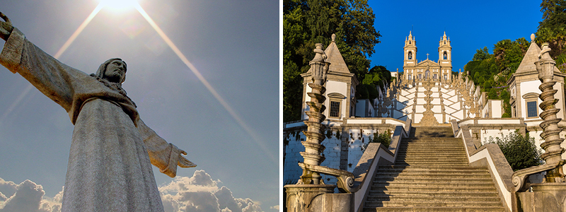 Allerførst besøger vi helligdommen Bom Jesus de Braga (UNESCO) lidt udenfor Braga med sin gigantiske pilgrimstrappe i barokstil samt valfartskirken. Trappen nærmest kravler op ad bjerget med kirken på toppen. Selve trappen, der har 600 trin, er fint dekoreret med skulpturer, fontæner og kapeller, der skildrer Jesus’ lidelser. Fra kirkepladsen og toppen af trappen er der en uovertruffen udsigt over Braga og det omkringliggende naturskønne landskab.