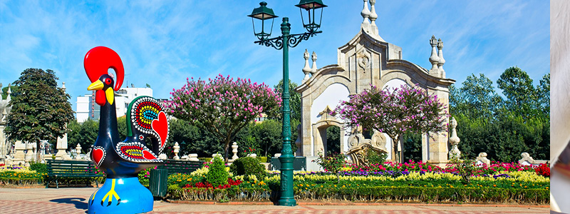 Flyrejse til Porto. Vi sætter kursen stik nord og holder pause i middelalderbyen Barcelos, hvor du får tid til at købe lidt frokost og se det lokale marked, Feria de Barcelos, som regnes blandt de største i Portugal. Portugals mest kendte souvenir, keramikhanen Galo de Barcelos, stammer herfra. Ifølge historien blev en uskyldig mand anklaget for en forbrydelse i Barcelos og dømt til hængning. Han blev imidlertid reddet af en hane, og den er derfor i dag blevet et ikonisk portugisisk symbol.