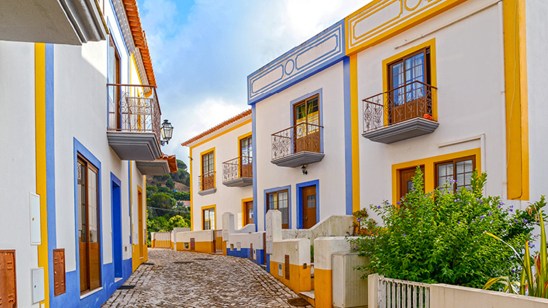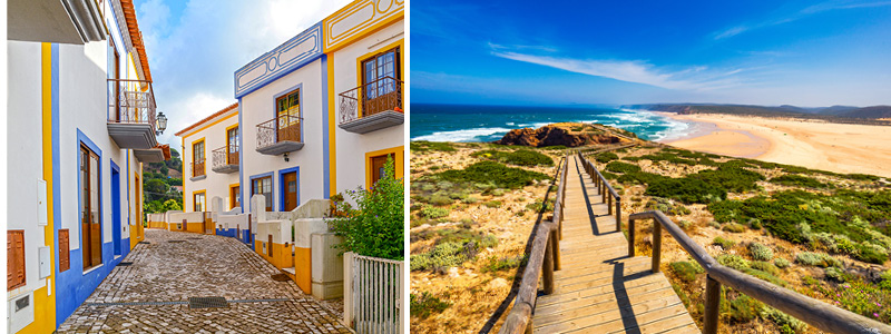 Billede: Algarves karakteristiske farvede huse og udsigt ved stranden Bordeira.