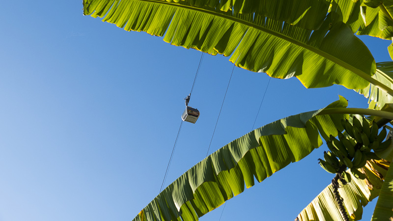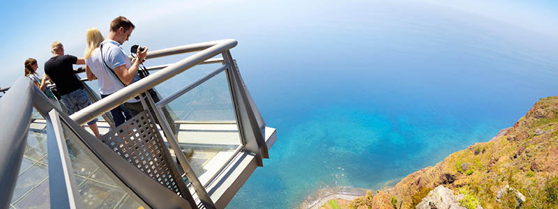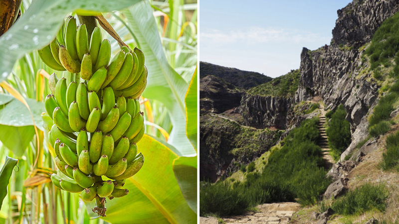 Bananpalmer ser vi overalt på sydkysten, fra hotelhaver til bananplantager, som ligger som et grønt tæppe i landskabet. De små Madeira-bananer er søde og sælges næsten udelukkende i Portugal. Vi besøger en bananplantage på vores tur på sydkysten, ligesom vi lægger vejen forbi et af de kendte firmaer, der producerer Madeira-vin. Her får vi en rundvisning og smager på vinen. Vi besøger også Cabo Girão, en af de højeste havklipper i Europa med sine imponerende 580 meters højde. Udsigten over Atlanterhavet er fantastisk – og bliver kun bedre fra den populære skywalk (gangbro) af glas, der strækker sig ud fra klippen.
