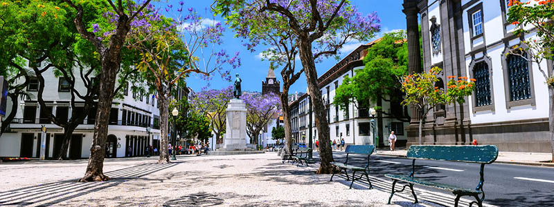 Jacaranda-træerne danner skygge over et af byens hovedstrøg, og den sort/hvide stenmosaik danner et symmetrisk mønster på Rådhuspladsen, som er svær ikke at beundre. Her er lækre restauranter, gode shopping-muligheder, et farverigt marked og en livlig havnefront. Og så hører Madeira i øvrigt til et af Vesteuropas billigste rejselande.