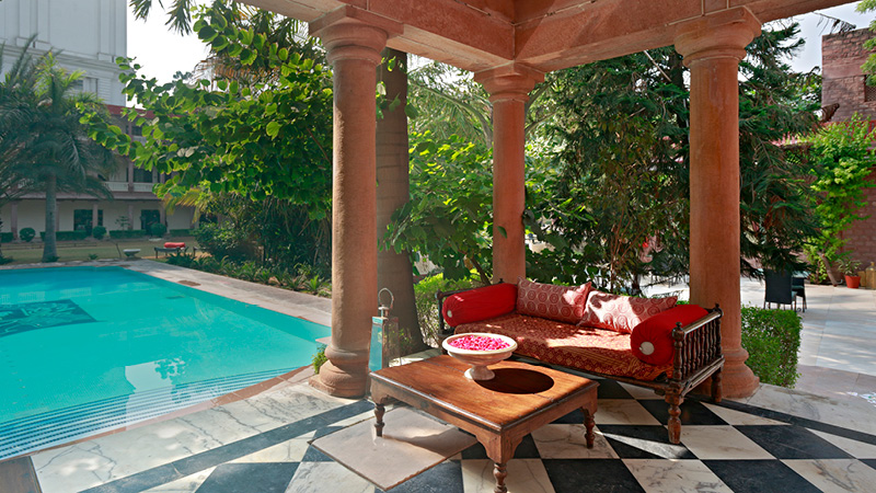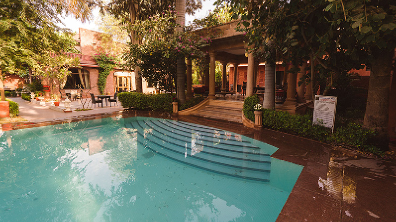 Ranbanka Palace er et stemningsfuldt hotel i hjertet af Jodhpur. Den historiske bygning kombinerer kolonial elegance med moderne komfort og tilbyder både spa, wellness, swimmingpool og restaurant. Hotellet ligger centralt med kort afstand til seværdigheder som Umaid Bhavan Palace og det imponerende Mehrangarh Fort.