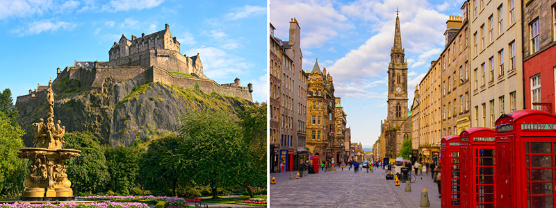 Formiddagen bruges på byvandring. Vi besøger bl.a. den historiske gamle bydel Old Town med Edinburgh Castle, som ligger på en bakketop for enden af The Royal Mile. Paladset har siden 1500-tallet huset mange skotske konger og dronninger, herunder Mary, Queen of Scots. I selve Old Town finder du snævre gader og tæt beliggende huse. I bydelen New Town er det klassiske georgianske bygninger fra 1700-tallet, der dominerer.