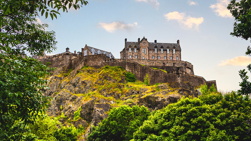 Vi skal selvfølgelig ind på slottet (entré inkluderet), som er Skotlands vel nok mest kendte attraktion. Edinburgh Castle er et middelalderslot med borgmur, prægtige bygninger samt brostensbelagte gader. Herfra har du en fantastisk udsigt over byen. Foran slottet er "tattoo-pladsen", og når man står der selv, er det svært at forstille sig, at den lille plads kan rumme så mange mennesker ved det årlige militær-tattoo i august. I øvrigt ikke at forveksle med tatoveringer – ’tattoo’ er en række årligt tilbagevendende militæropvisninger med musik, dans og parader.