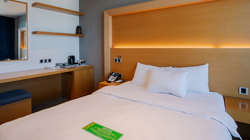 Det 4-stjernede Sea Cruise Hotel i Sokcho er et moderne 20-etagers hotel med 443 værelser, herunder flere forskellige værelseskategorier. Hotellet ligger i hjertet af Sokcho, hvor Det Østkinesiske Hav møder Cheongcho søen og tilbyder en perfekt balance mellem afslapning og komfort. Værelserne er alle udstyret med moderne bekvemmeligheder, såsom Wi-Fi, aircondition, fladskærms-tv og køleskab. Vi bor i standardværelser. Hotellet tilbyder gratis Wi-Fi, tagterrasse, elevator, morgenmadsrestaurant og hæveautomat.