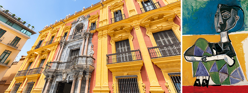 Billeder: Malagas prægtige bygninger med farverige facader. Vi anbefaler et besøg på byens Picassomuseum.