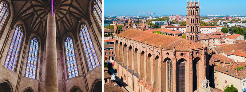 Ved det gotiske Jakobiner-kloster skal vi lægge mærke til loftet i bygningen, hvis hvælvinger får det til at ligne palmetræer, og ligeledes glaspartierne, hvis mosaikker er uovertrufne.