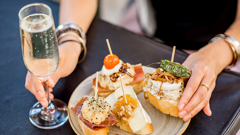 Efter besøget kører vi lidt længere sydpå og forlader Baskerlandet. Vi besøger La Rioja-regionen, og det bliver naturligvis i vinens tegn. Vi besøger den lille provinsby, Laguardia, der er betegnet som en af Spaniens smukkeste landsbyer, oprindelig grundlagt som en forsvarsbastion for Kongedømmet Navarra i det 10 århundrede. Layoutet er næsten intakt i dag, og et spændende besøg venter os. Her får vi den første smagning på Rioja-vinen og en pintxo.