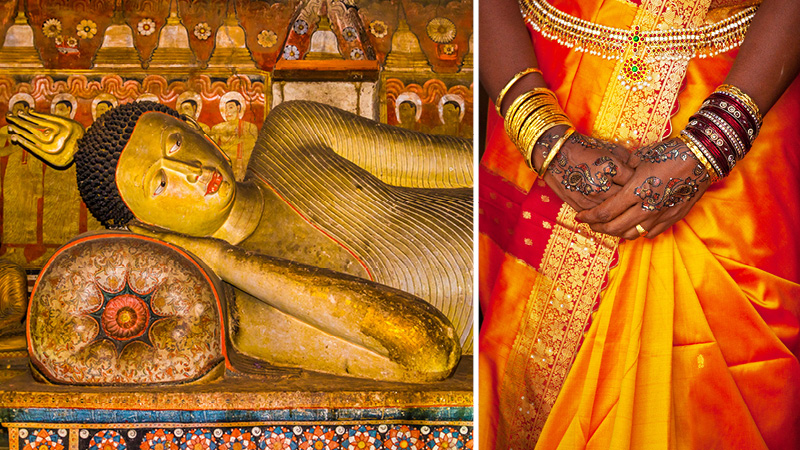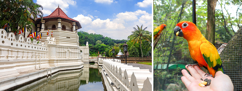 Billede: Templet Dalada Maligawa i Kandy og Bird Paradise Experience på lodgen.