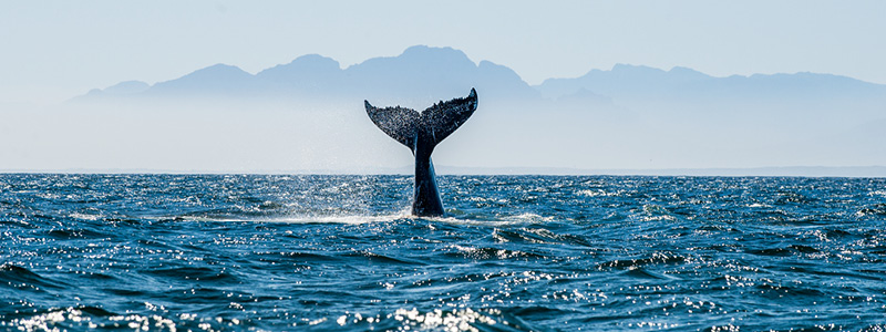 Ofte er det første, man ser, vandsprøjtet fra hvalens næsebor ovenpå hovedet. Herefter bryder ryggen med den lille rygfinne fri af vandskorpen, inden hvalen dykker med halen højt hævet. Både blåhvaler, brydeshvaler, kaskelothvaler og sågar spækhuggere ses ofte langs denne kyst. Det samme gør en række mindre hvaler samt flokke af delfiner, der springer legesygt i vandoverfladen.