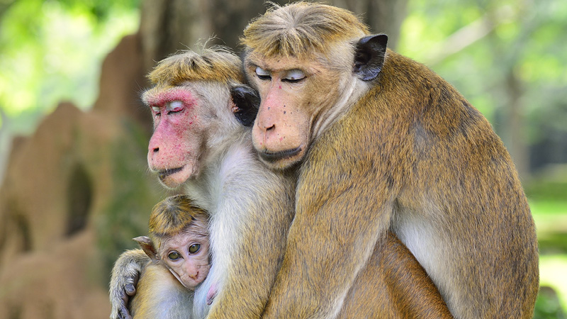 Billede: Aber og elefanter i Minneriya Nationalpark.