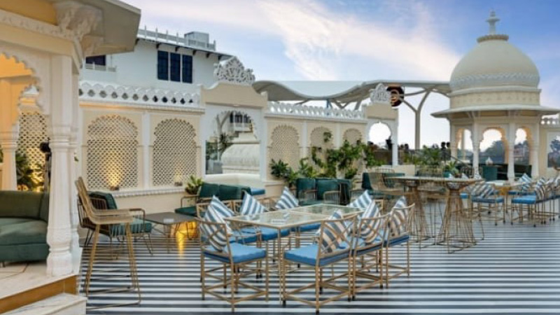 Måltiderne indtages på hotellets restaurant Cinnamon, der har udsigt over poolen og på tagterrassen finder man baren Stallion med en fantastisk udsigt over Swaroop Sagar-søen.