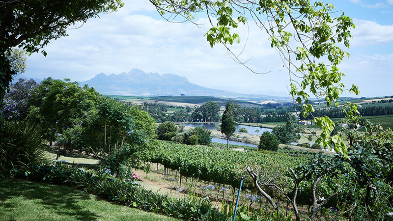 I en rolig og naturskøn del af vinlandet, lidt uden for Stellenbosch, finder vi det charmerende Devon Valley Hotel. Hotellet ligger højt med en betagende udsigt over vinmarker og olivenlunde, og i horisonten anes Helderberg-bjergene.