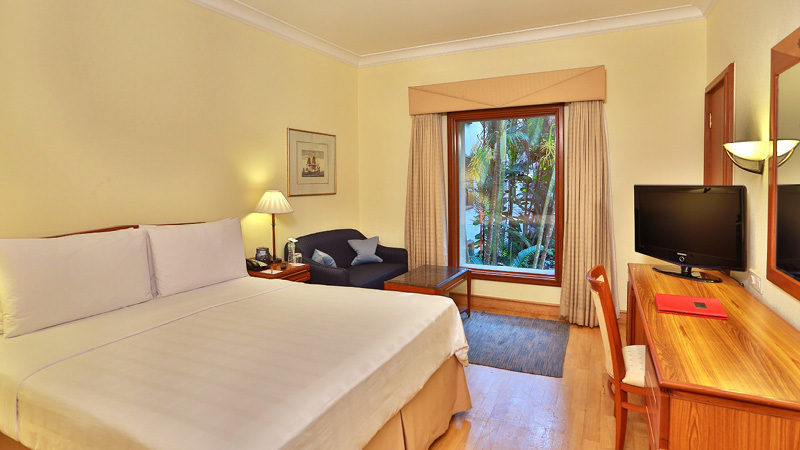 Hotellet har 85 moderne værelser fordelt på forskellige kategorier og byder på tre restauranter, en bar, udendørs swimmingpool, fitnesscenter og et ayurvedisk wellnesscenter. Der er også mulighed for at spille billard og skak, og der er gratis wi-fi på hele hotellet.