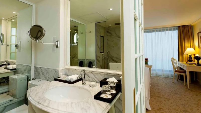 The Kingsbury Hotel i Colombo er et ikonisk hotel, der ligger utrolig centralt. Det er tæt på både Galle Face Green, World Trade Centre og Dutch Hospital, og så er her en perfekt kombination af luksus og komfort. I alt er der 229 elegante værelser og suiter med panoramaudsigt over havet eller Galle Face Green, alle udstyret med moderne bekvemmeligheder som kabel-tv, løleskab og marmorbadeværelser. Vi bor på Superior Rooms med store gulv til loft-vinduer med en smuk udsigt over havnen eller Galle Face Green, kingsize-senge med økologisk bomuldslinned og mange øvrige bekvemmeligheder.