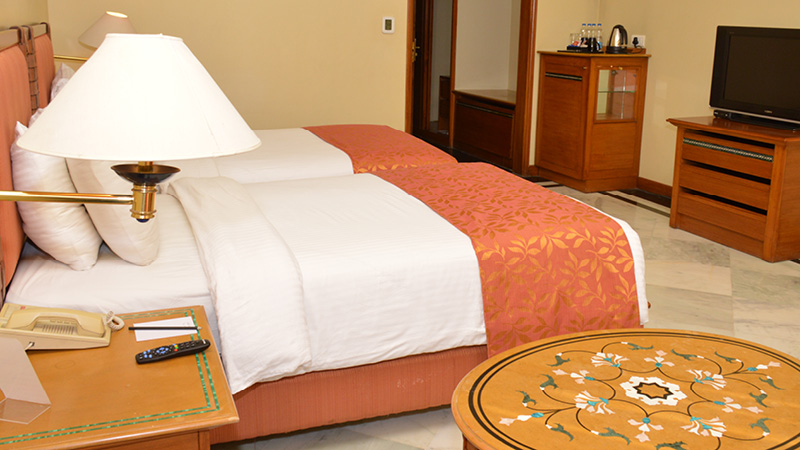 Vi bor i Luxury Garden View Rooms, rummelige, airconditionerede værelser med udsigt til haven. Værelserne har moderne faciliteter som wi-fi, satellit-tv, te- og kaffefaciliteter samt gratis mineralvand. Badeværelserne er udstyret med bruser.